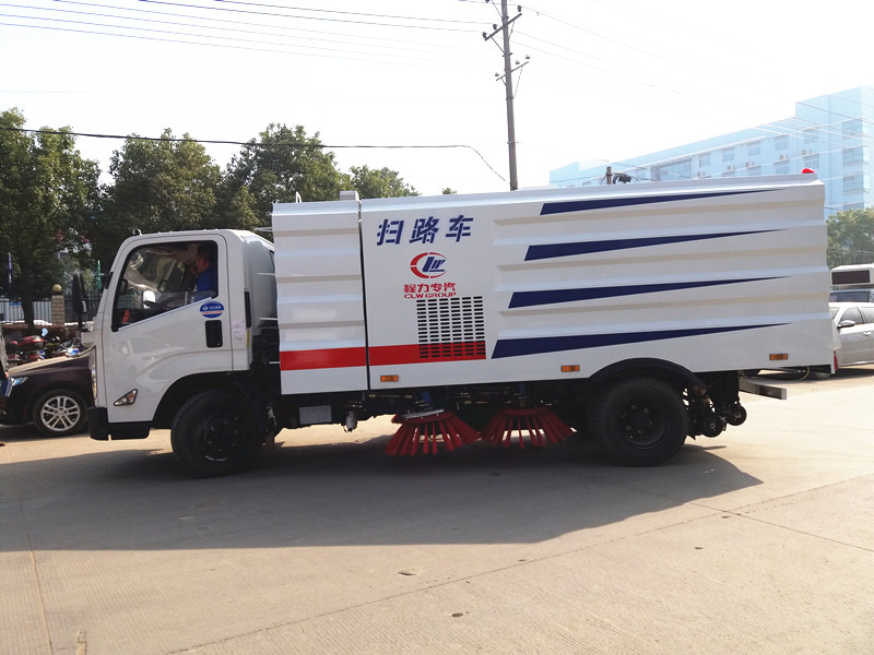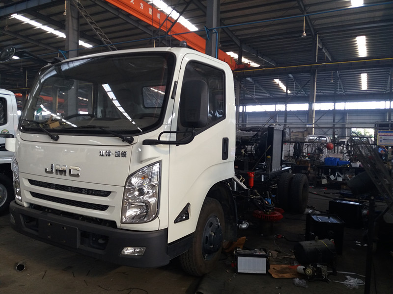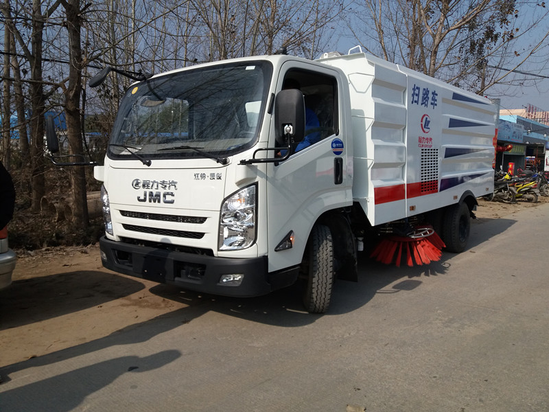 江鈴凱瑞掃路車:江鈴N800 單排可前翻駕駛室,江鈴五十鈴112KW 152馬力發(fā)動機,6檔變速箱,前橋3噸,后橋5噸,軸距3815mm軸距