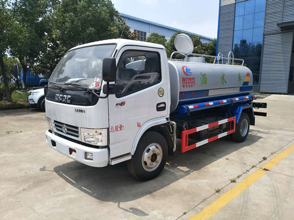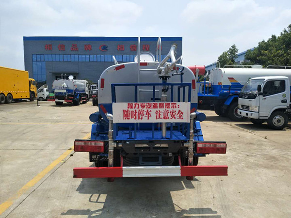 罐體容積為5立方灑水車,新款工藝罐體,厚度為4mm碳鋼Q235材質(zhì),罐內(nèi)隔板具有防波作用,以減輕汽車行駛時(shí)罐體液體沖擊,罐體及整車外形尺寸按照公告。帶大功率專用灑水泵,泵可自吸自排,整車前沖、后灑、側(cè)噴、帶65消防接口,后平臺帶綠化灑水炮,灑水炮可全方位旋轉(zhuǎn),可連續(xù)調(diào)成直沖狀、大雨、小雨、毛毛雨;前封頭帶水位計(jì),后平臺主管路帶1寸澆花接口,后爬梯。平臺后部帶小安全告知牌:“隨時(shí)停車,注意安全”,帶兩根水管及陰陽端。罐體顏色:上白/下藍(lán),銀灰/銀藍(lán),罐體兩側(cè)噴“灑水車、綠化灑水車”字樣,貼反光標(biāo)示。灑水車可加裝前沖后灑氣動閥駕駛室控制、可加裝霧炮機(jī)組發(fā)電機(jī)組噴霧降塵裝置、車頭可加裝推雪雪鏟、雪滾裝置街道、公路除雪等。